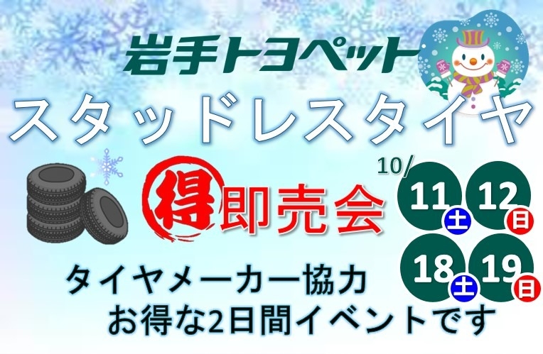 スタッドレスタイヤがお得に買える得即売会のお知らせです!!