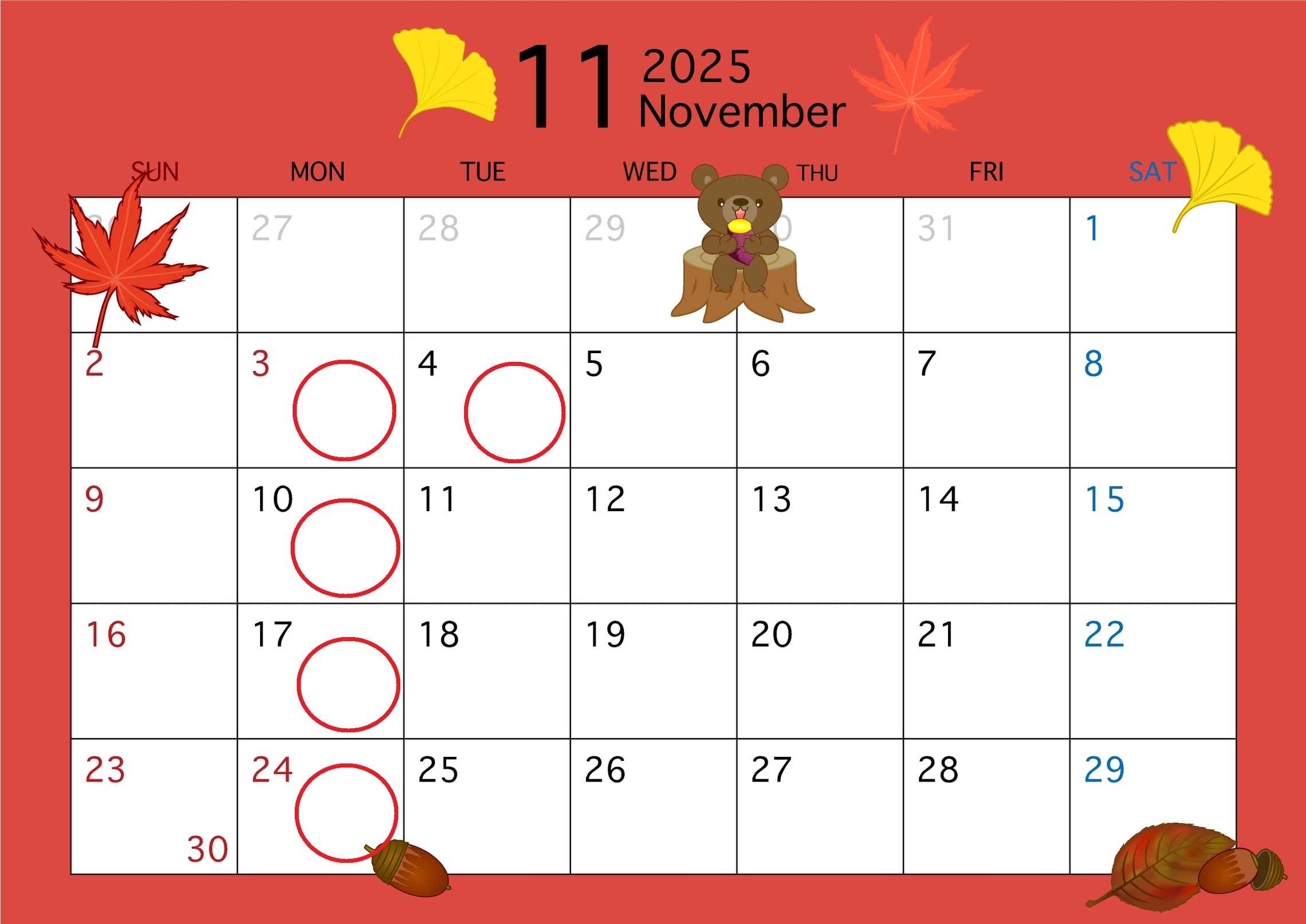 11月の休業日のお知らせになります。
